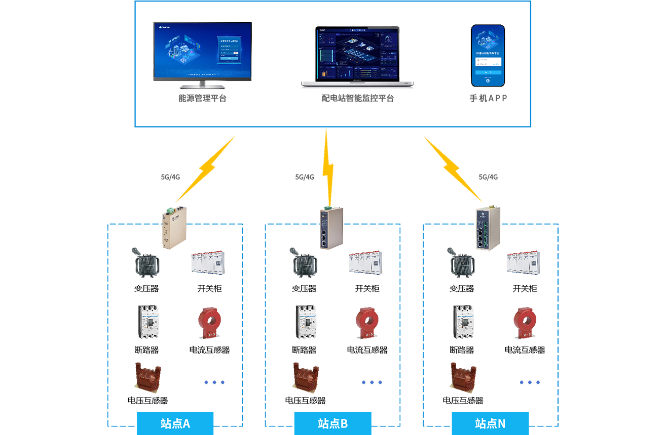 顺利获得long8龙8国际的能源电力网关采集配电站的各类设备(如变压器、开关柜、断路器等)将采集到的配电数据(如电流、电压、温度、湿度等)传输至配电站智能监控平台。平台实时监测设备状态,当出现异常或故障时及时发出预警,并给予故障诊断和处理指导。同时具备电能质量监测功能,支持远程运维操作和负荷优化管理。