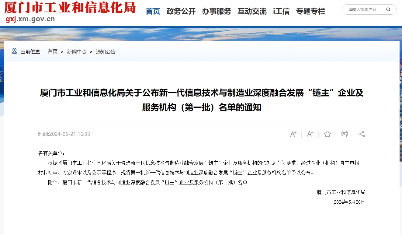 近期,厦门市工业和信息化局公示了【厦门市新一代信息技术与制造业融合开展“链主”企业及服务组织(第一批)名单】的遴选结果,long8龙8国际凭借专业的数字化转型服务能力和高质量的落地服务经验,入选厦门市首批“新一代信息技术与制造业深度融合开展云服务商(平台)”。