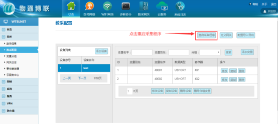 可以在设备列表中选择对应网关更多操作中的下发命令