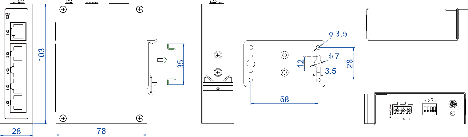 WS1005E-5T为5口百兆非网管型工业以太网交换机。该产品给予百兆电口,采用DIN导轨式或壁挂式安装方式,能满足不同应用现场的需求。