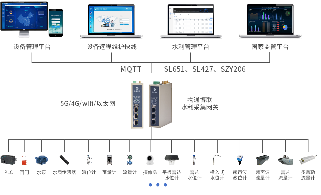 数据采集:实现对各种品类的水利设备数据采集到云平台、水利监管平台等