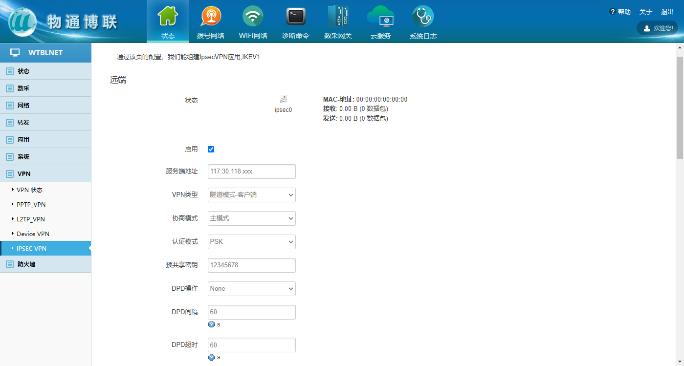 long8龙8国际网关支持IPSEC VPN,帮助企业构建高安全性的数据采集系统